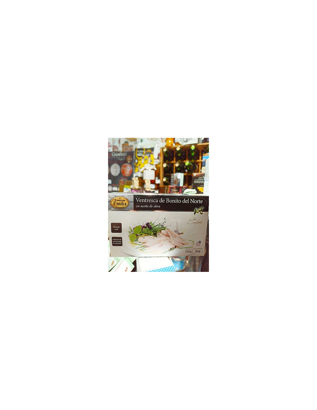 Ventresca de Bonito del Norte Conservas Emilia. Lata metálica de 120 gramos