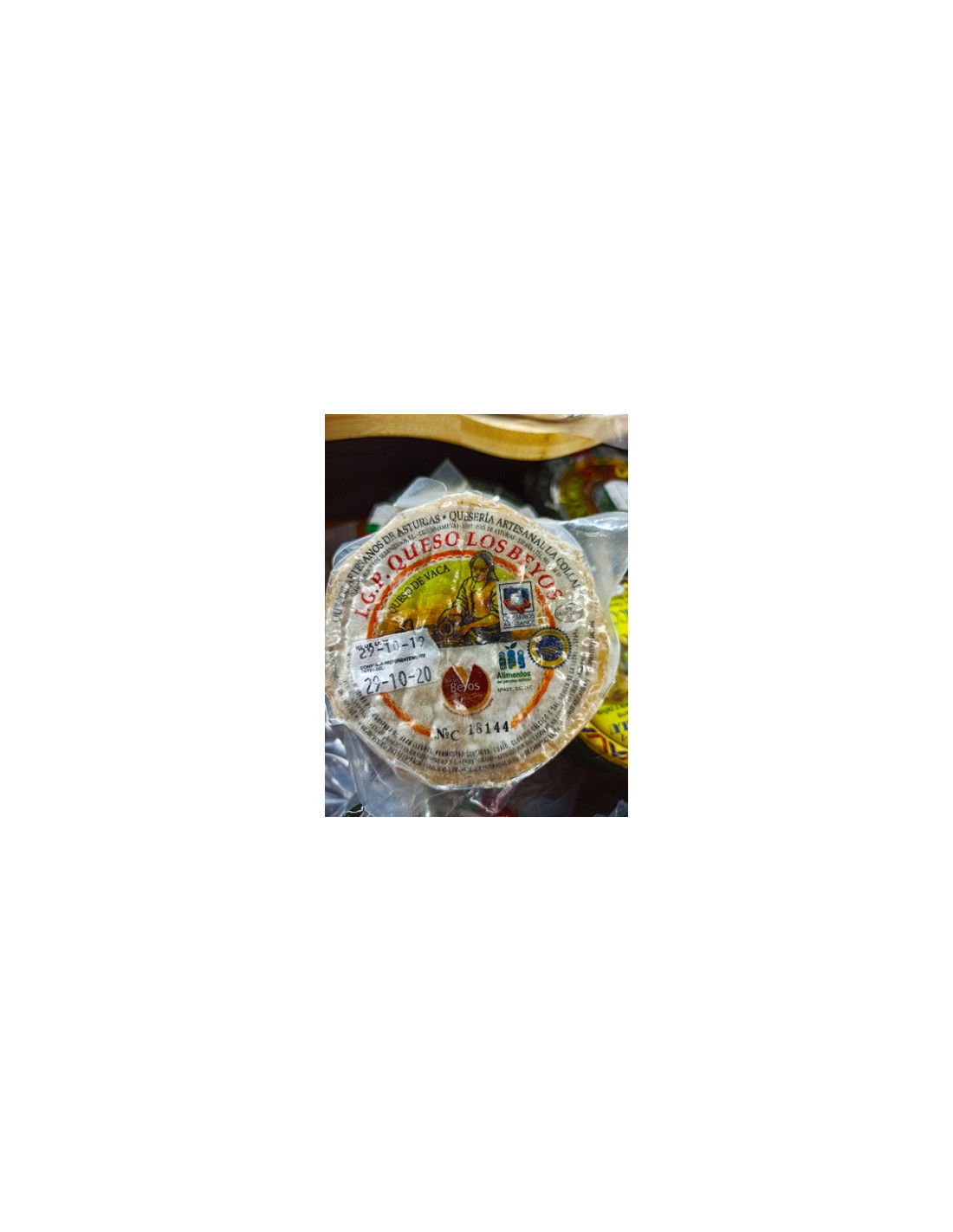 Queso los Beyos I.G.P. de vaca. Queso de textura fina , corteza rugosa y ligeramente enmohecida. Formato redondo aproximadamenteo 400gramos.
